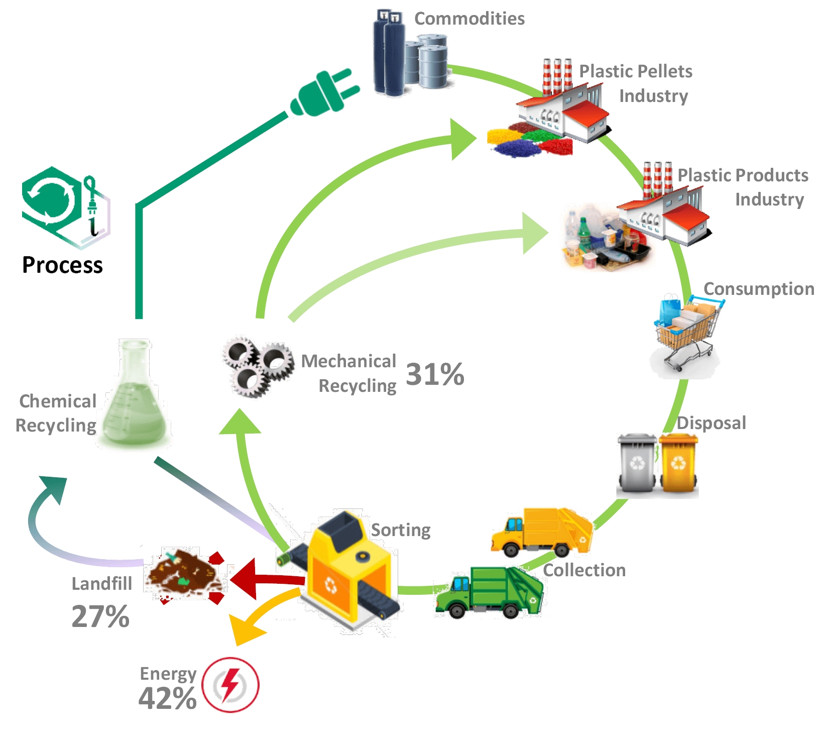 Aproximadamente el 70% de los residuos plásticos en Europa (18,5 millones de toneladas/año) no se recicla debido a razones técnicas o económicas y se termina enviando a vertederos (27%) o se incinera (42%). Esta situación acaba por afectar de manera muy negativa al medio ambiente en términos de contaminación y emisiones de gases de efecto invernadero, así como a la percepción social de la gestión, la industria de productos de consumo y los responsables políticos.